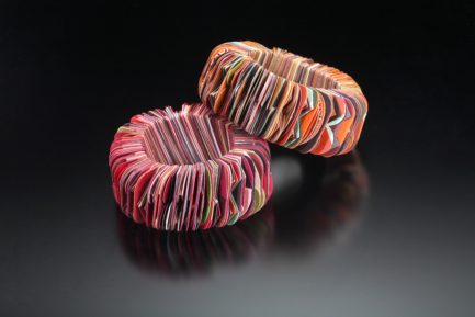 To the delight and awe of her clients and students, Cynthia Toops has been transforming polymer clay into incredible objects of wearable art. In this class she will further inspire you by teaching some new tricks to construct organic hollow forms, bracelets, brooches and pendants using thin sheets of polymer clay. Cane work will be covered as it is a useful way to add pattern and interest to the jewelry. To save time and to focus on techniques, we will be working in a limited palette: black and white. No experience necessary.